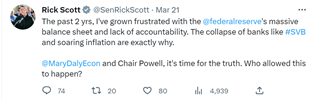 Since being elected to the U.S. Senate, Senator Scott has repeatedly urged action to address America’s debt crisis and the harmful effects of inflation. Click HERE for a comprehensive list of his statements and actions on this urgent issue.