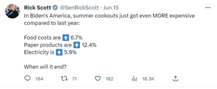 WASHINGTON, D.C. – Today, Senator Rick Scott released a weekly update on his actions to address America’s debt crisis and rising inflation following the Bureau of Labor Statistics (BLS) releasing Consumer Price Index (CPI) and Producer Price Index (PPI) numbers for May, which showed inflation continued to rise. Since Joe Biden became president, CPI has risen 16.3% and PPI has risen 16.6%.